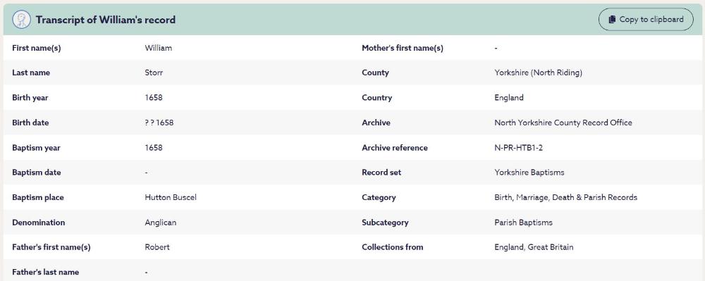 Son: Robert STORR, 1658