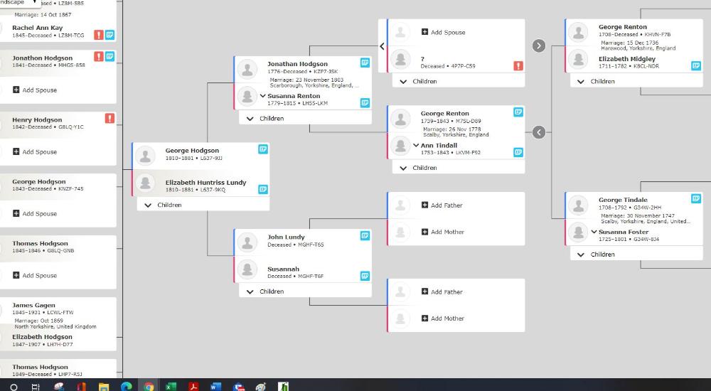 This info has come from a FamilySearch family tree, but seems doubtful. Georges birth year is stated as 1810 (there's an 1841 cencus entry showing a George Hodgeson, son of Jonathan, farmer from Hutton Buscel) born on 1815). His death is shown as 1851 - when elizabeth, his wife, would have been 14!