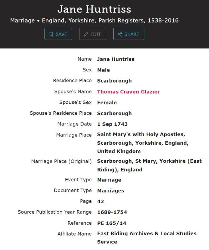 Jane HUNTRISS (c. 1720- )