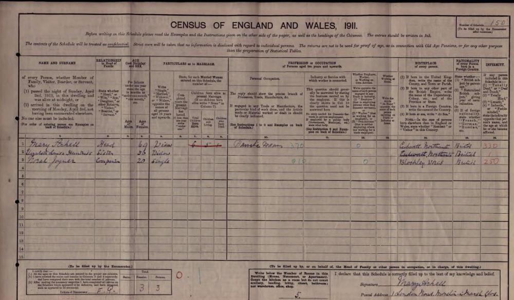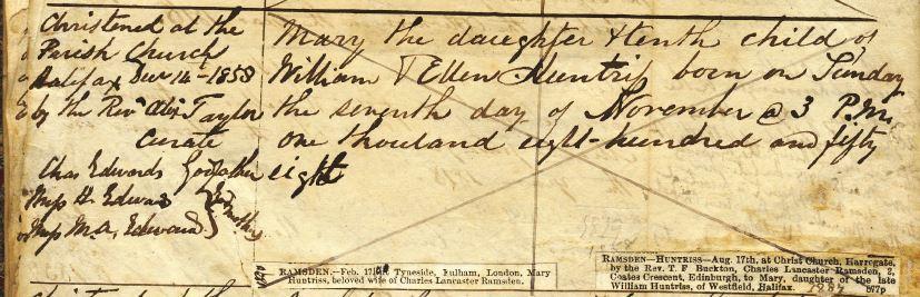 1881 Census - living in WestField, Ling Cross Street, Halifax, retired Woolstapler, with Harold, Lucy, Mary Isabel, Effie, and Edward, who was then married.