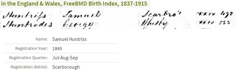 1851 Visitor with elizabeth Goodwell, described as "Nurse Child". The implication is that his mother (and father?) have died by then Elizabeth's maiden name was Huntriss.