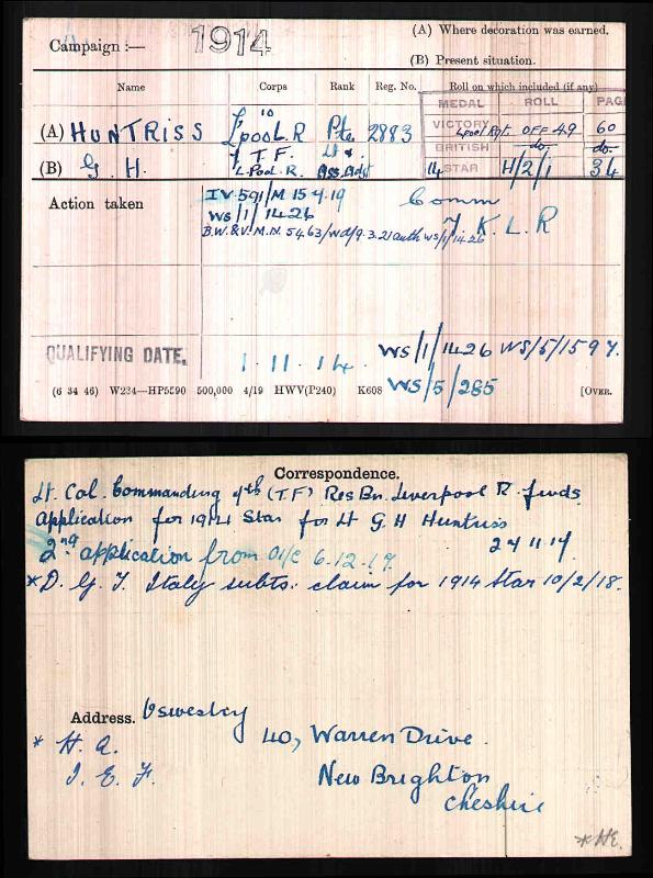 Lived at 1 Kingsway, , Heswall; died at "Elgin", Gayton Lane Heswall".