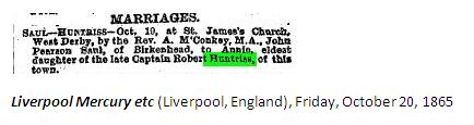 Captain Robert Huntriss, per daughter's marriage notice