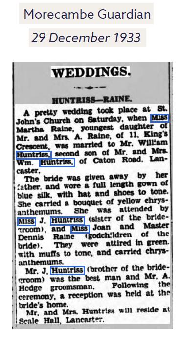 However the reference in Simon Giles Website is to Bill Huntriss, and this is certainly the name used by his daugther in law, Ellen Huntriss when I spoke to her in Jan 2002