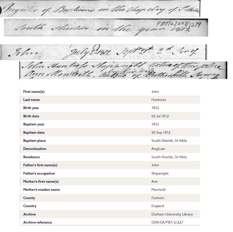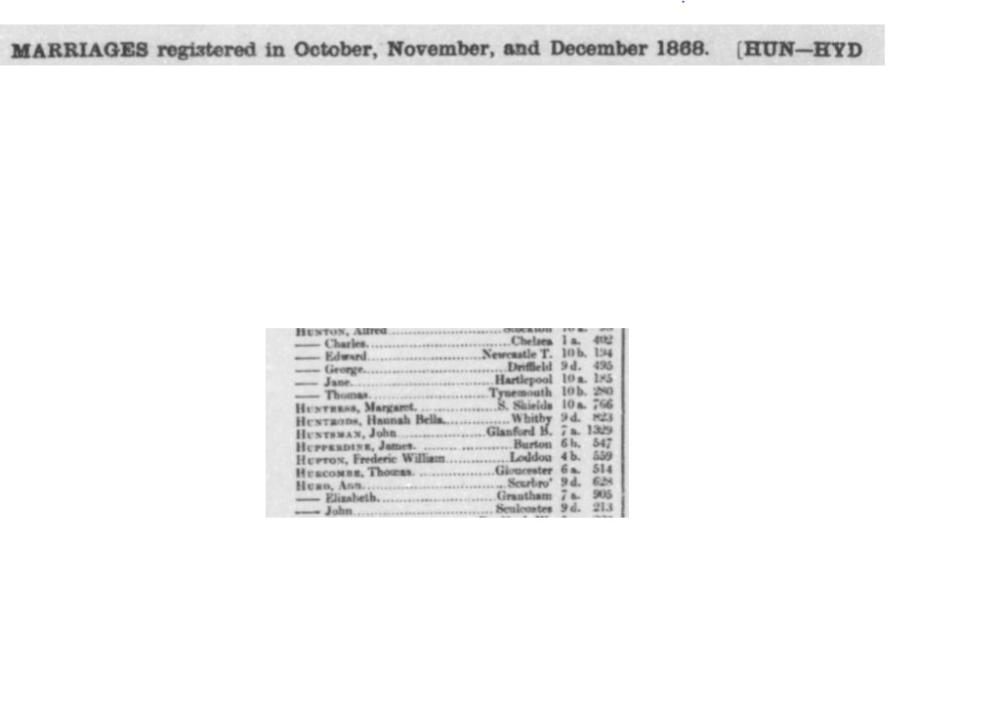 1861 census - living with Mary, James and John. WHilst she is shown as head (husband John does not appear), whe is nevertheless shown as married (rather than Widowed). Occupation = grocer, living at 36, Thames Street, Westoe, South Shields