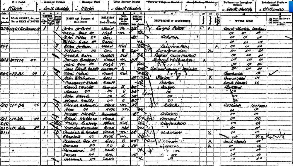 1851 Census - living at Cuthbert Street, Jarrow, South Shields - mariner