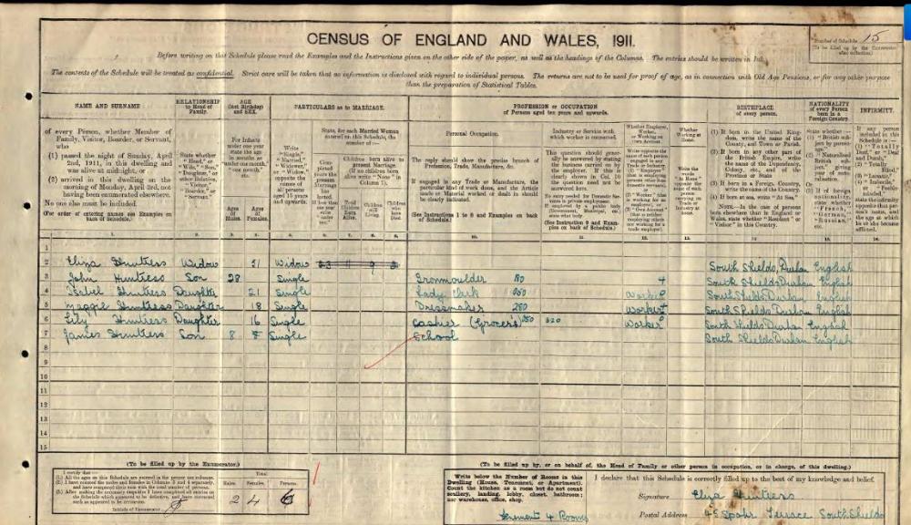 1891 Census - widow - living at 34, Catherine Street, Westoe, South Shields