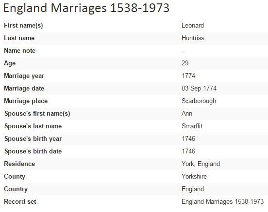 Leonard HUNTRISS (c. 1745- )