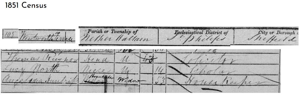 1851 Census - Wentworth Terrace, Sheffield, Widower, born Hackney Middlesex