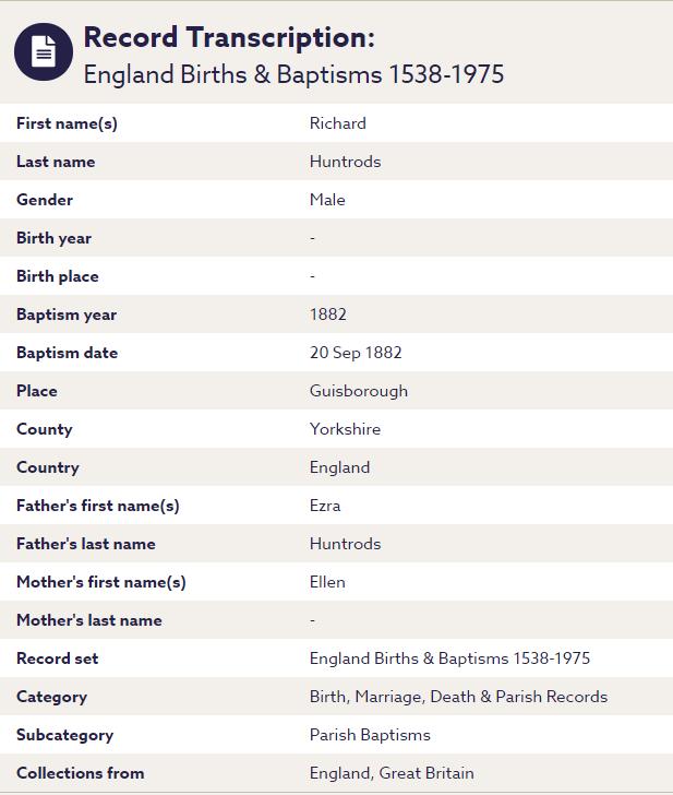 Richard HUNTRODS, 1882, age 0