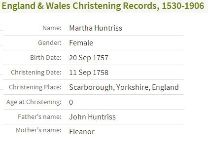 Martha HUNTRISS, 1758, age 1