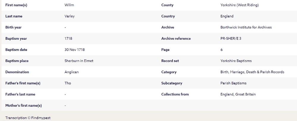 Thomas VARLEY (c. 1693- )