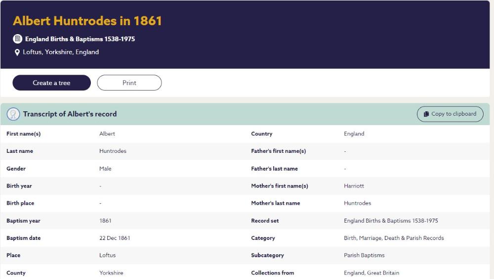 Albert HUNTRODES, 1861, age 0