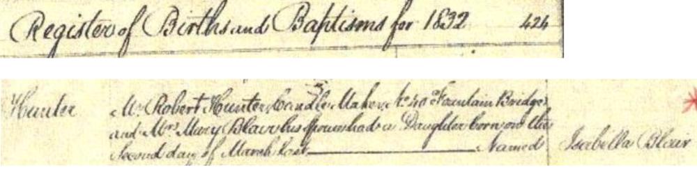 Isabella HUNTER, 1832, age 0