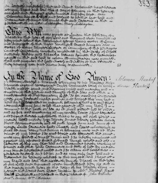 Solomon HUNTRISS, 1756