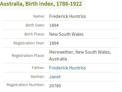 Next of kin Father, F. Huntriss, Chin Chin Street, Islington, Newcastle, New South Wales