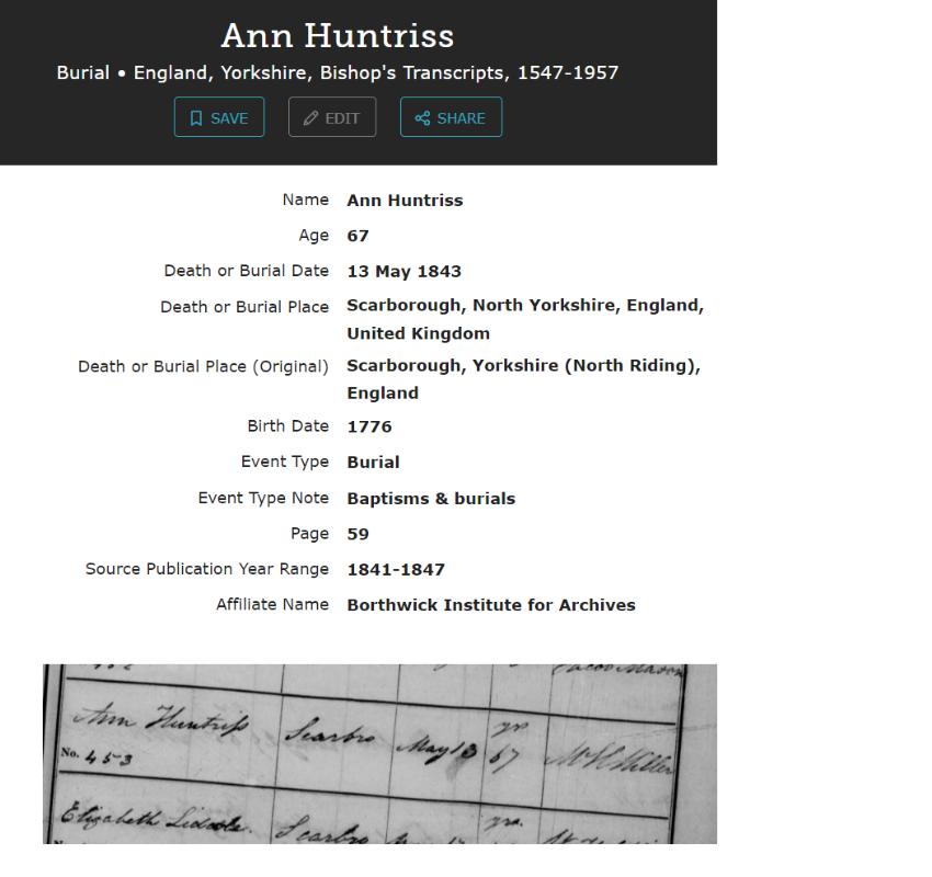 1841 Census - St Mary Street, Scarborough, living with James Bayes (Builder) and family